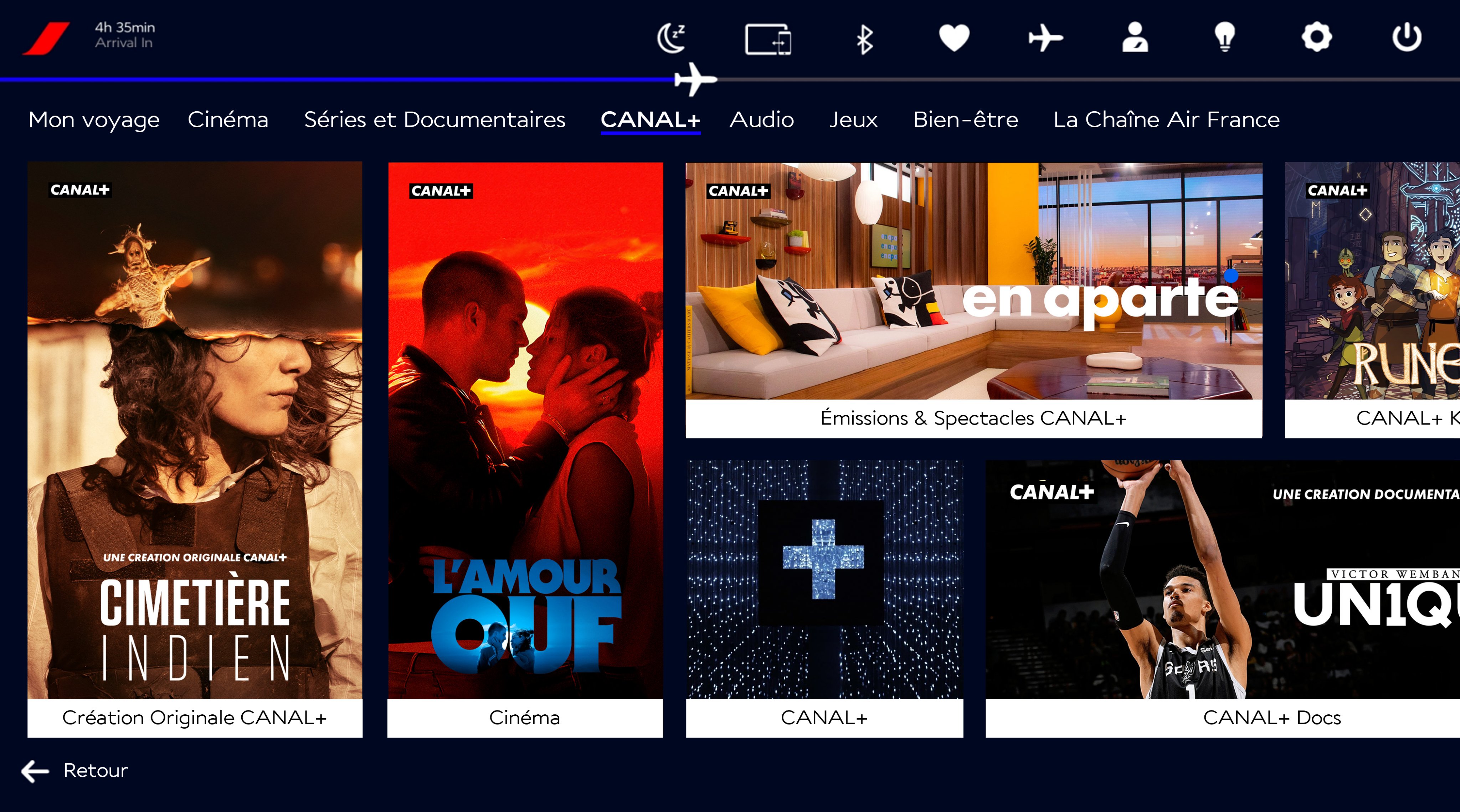 En choisissant CANAL+, acteur majeur de la création audiovisuelle francophone, Air France confirme son engagement pour la promotion du savoir-faire culturel français. Près d’un tiers de son offre de divertissement est déjà consacrée aux productions françaises. Ce partenariat renforce cette orientation, tout en apportant des contenus récents et exclusifs à ses passagers.