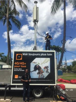 Photo : Mise en œuvre d’émetteur 4G temporaire au cœur des événements par les équipes techniques d’Orange lors du Carnaval 2017