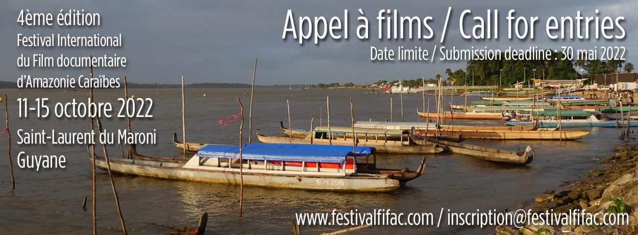Le Festival International dédié au meilleur du documentaire de création et aux contenus numériques, le FIFAC se tiendra du 11 au 15 octobre 2022 à Saint-Laurent du Maroni (Guyane) et en ligne sur le site du festival.