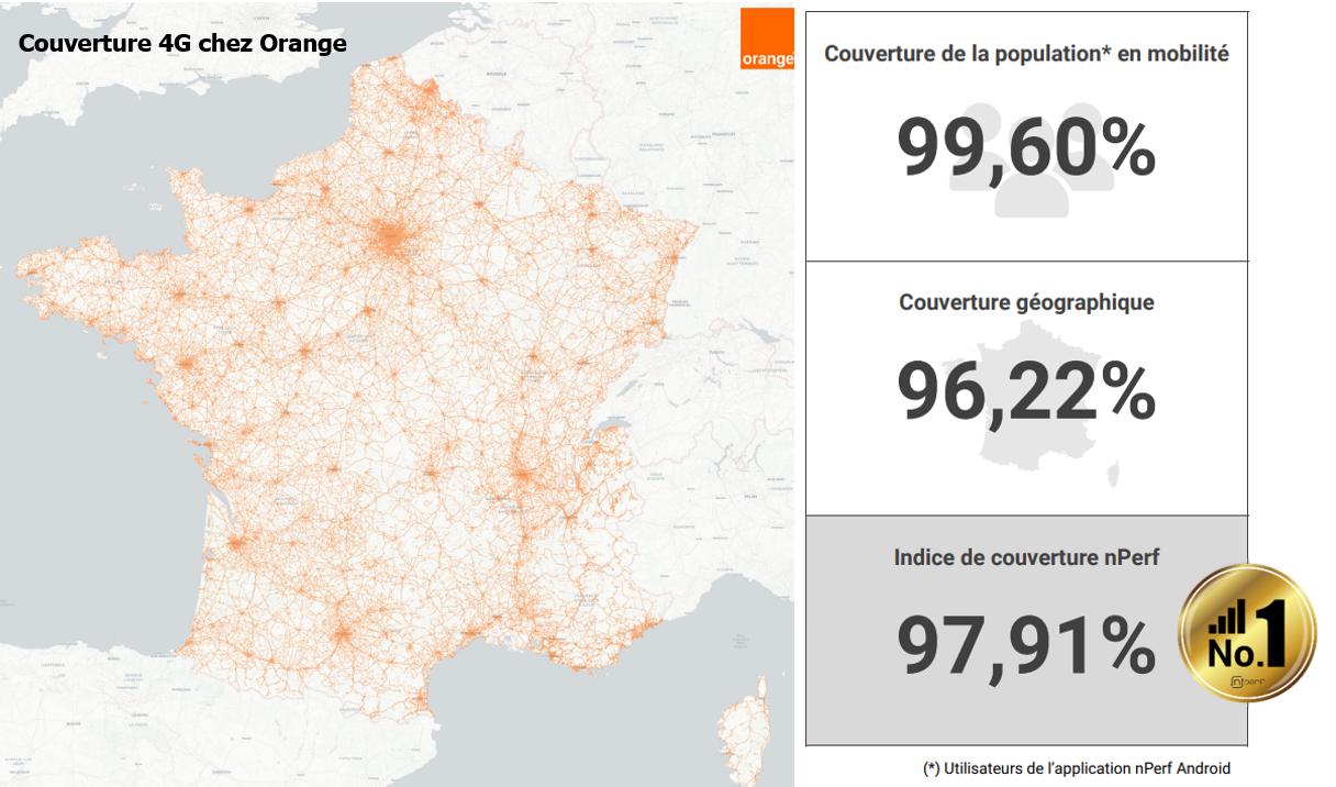 L’indice de couverture nPerf tient compte à parts égales de la couverture géographique et de la couverture de la population en mobilité.