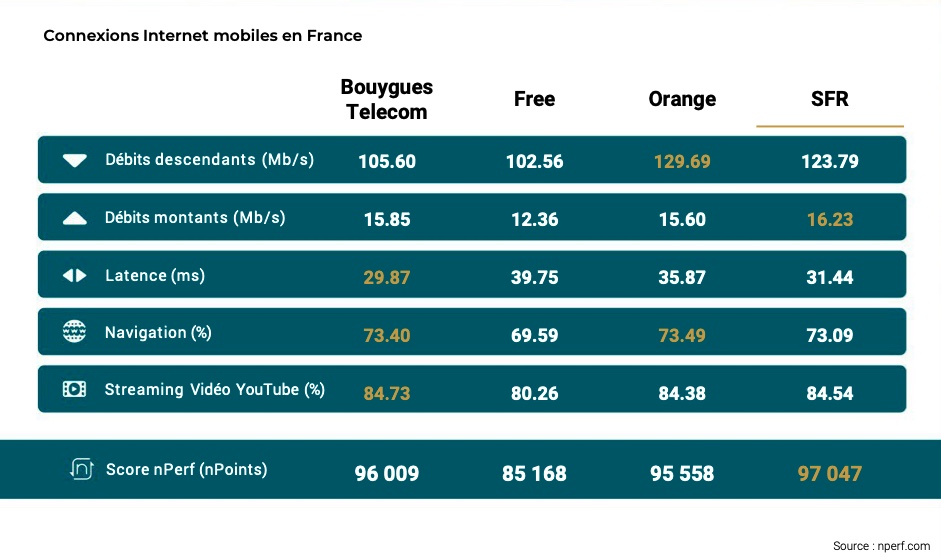 Selon le dernier baromètre en date de nPerf, les abonnés SFR ont bénéficié des meilleures performances globales de l’Internet mobile en 2024.