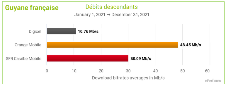 ​Baromètre nPerf des connexions Internet mobiles dans les Antilles et la Guyane française, en Guadeloupe, les abonnés Orange ont profité, en 2021, des meilleures performances de l’Internet mobile en Guadeloupe.
