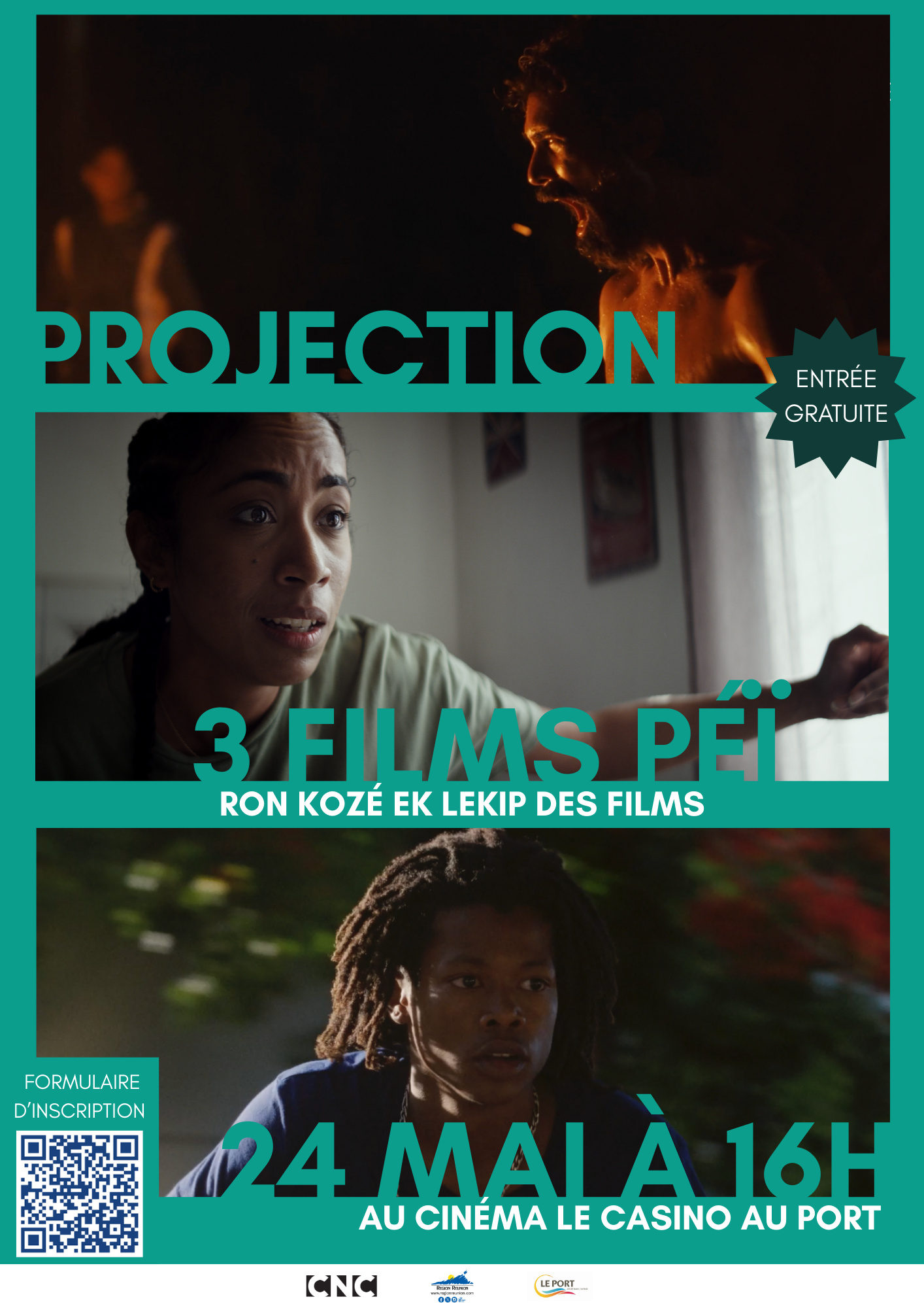 Premier temps fort de cette initiative : une séance de projection gratuite se tiendra le samedi 24 mai à 16h au Cinéma Le Casino du Port. Au programme, trois courts-métrages péï qui mettent en lumière des récits puissants, ancrés dans les réalités sociales, émotionnelles et poétiques de l’île.