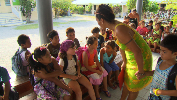 Vous prenez le chemin le plus long, vous allez tout droit sur le lagon et tournez… sur l’atoll de Fakarava en Polynésie. C’est là que Moevai, petite Vahiné de 8 ans, en classe de CE2-CM1, étudie et conjugue au tableau noir le verbe « travailler », ou macouler en paumotu, langue des habitants des Tuamotu. « Quand j’étais petit, je n’avais pas le droit de parler tahitien en classe et on nous répétait que nos ancêtres étaient gaulois ! », raconte Gilles, instituteur depuis vingt ans dans cette école…