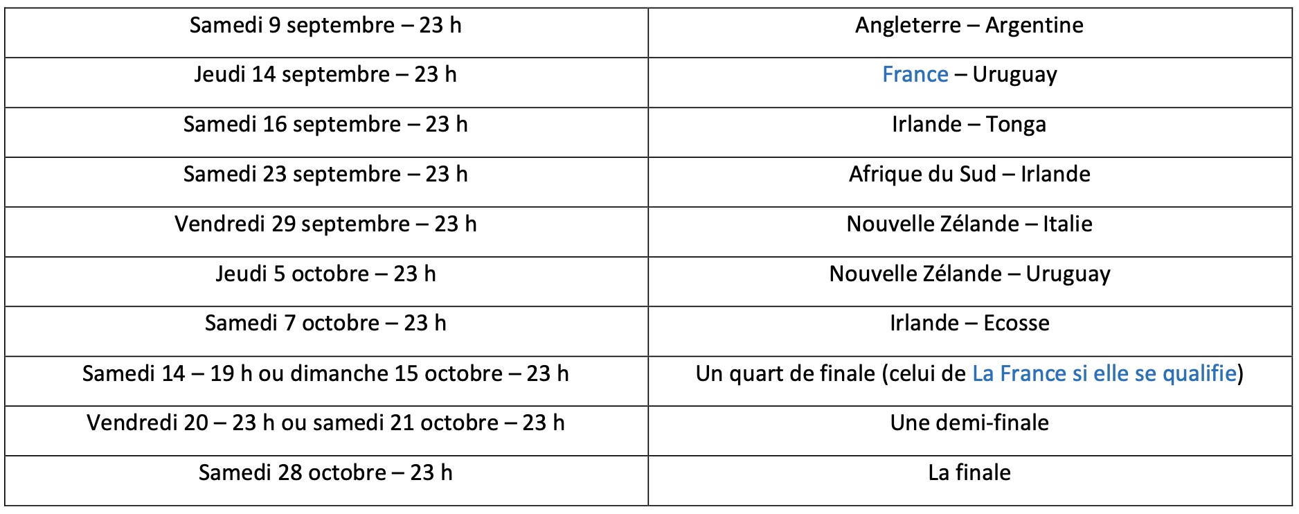 Calendrier des matchs à suivre sur Antenne Réunion (heure Réunion) :