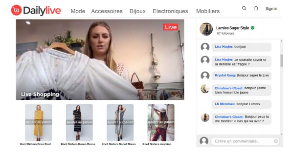 Dailylive propose en effet aux commerçants de vendre leurs produits via une vidéo en direct, accessible en live et en replay. Directement, sans intermédiaires (marketplace, site e-commerce), les commerçants interagissent directement avec leurs clients.