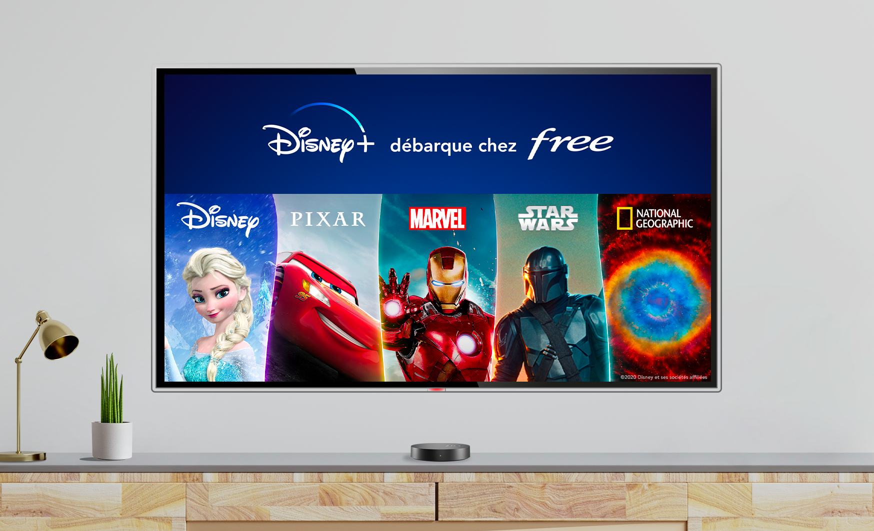 Désormais, les abonnés Freebox peuvent accéder à l’intégralité des contenus Disney+, sur leur télévision connectée au Player Freebox Pop ou mini 4K ainsi que sur leurs terminaux portables (mobiles, tablettes, consoles de jeux...) avec un accès jusqu’à 4 écrans en simultané.
