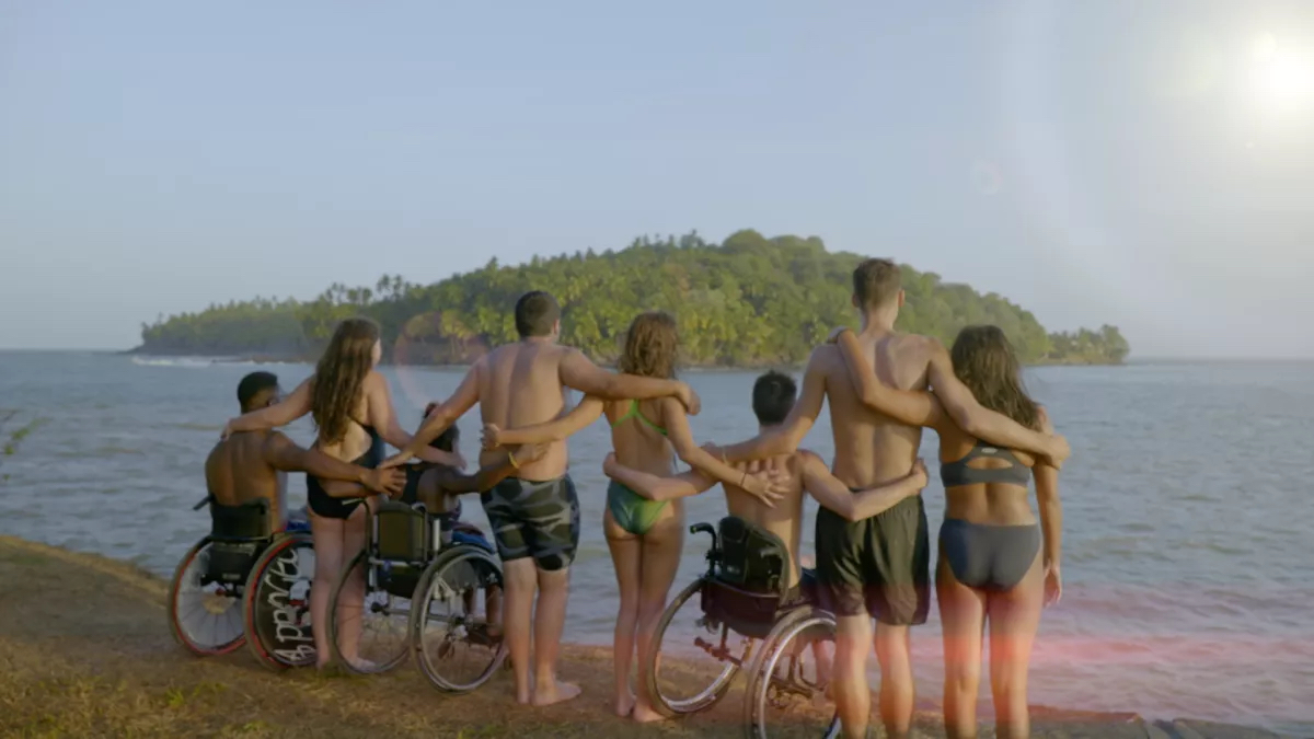 À l’image de Philippe Croizon – amputé des quatre membres et devenu un aventurier hors pair – Maïwenn, Lucie, Natasha, Sélam, Lénaïck, Nolan et Jean-Rowane incarnent une jeunesse résiliente et combative. Ils s’entraînent au quotidien au CREPS de Vichy, au plus haut niveau du handisport. À leurs côtés, Louis, un athlète valide, leur sert de repère, de partenaire et de moteur. Tous ensemble, ils s’attaquent à un défi inouï : quitter à la nage l’île des damnés pour retrouver la terre ferme, comme une métaphore de leur propre émancipation.