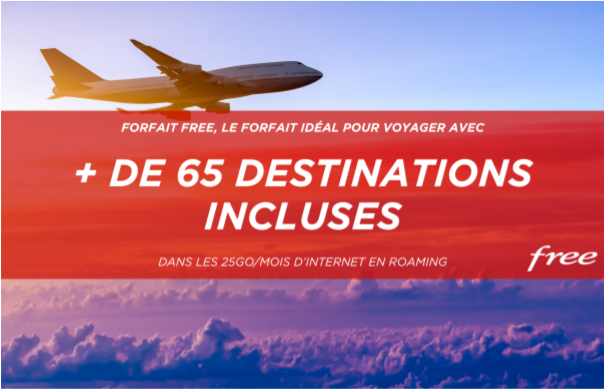 Avec le Forfait mobile Free, les abonnés bénéficient d’une offre toujours plus complète. Aujourd’hui, plus de 65 destinations bénéficient du roaming data (25Go/mois) inclus dans le forfait.