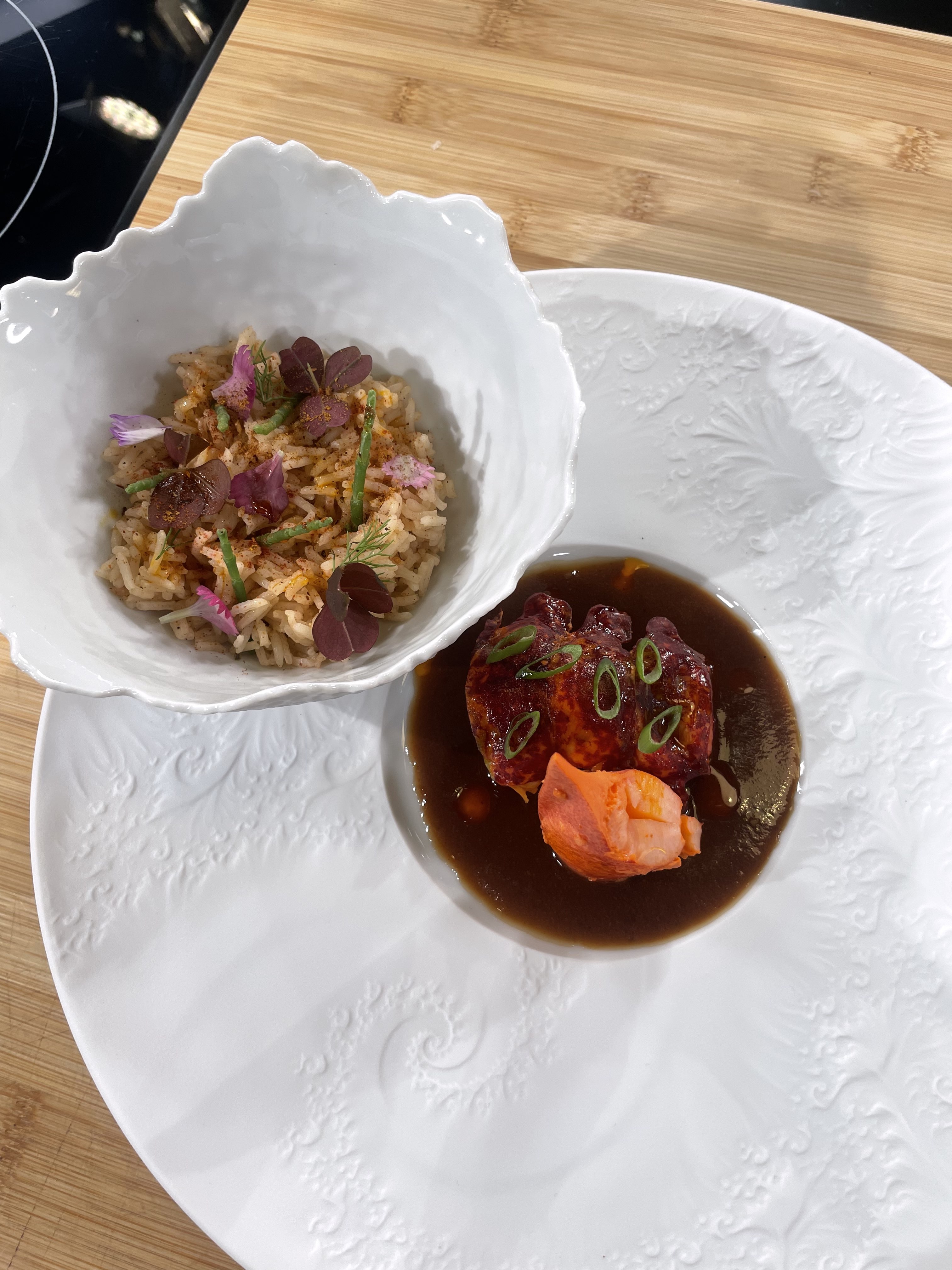 Né en Martinique, ce chef étoilé distille des produits insolites dans sa cuisine gastronomique : poivre de cassis, fleurs de cazette ou encore feuille de cannelier, qu’il fait infuser dans un riz créole. Il sera servi avec un curry de homard. Un véritable clin d'œil à la gastronomie antillaise de ses origines !