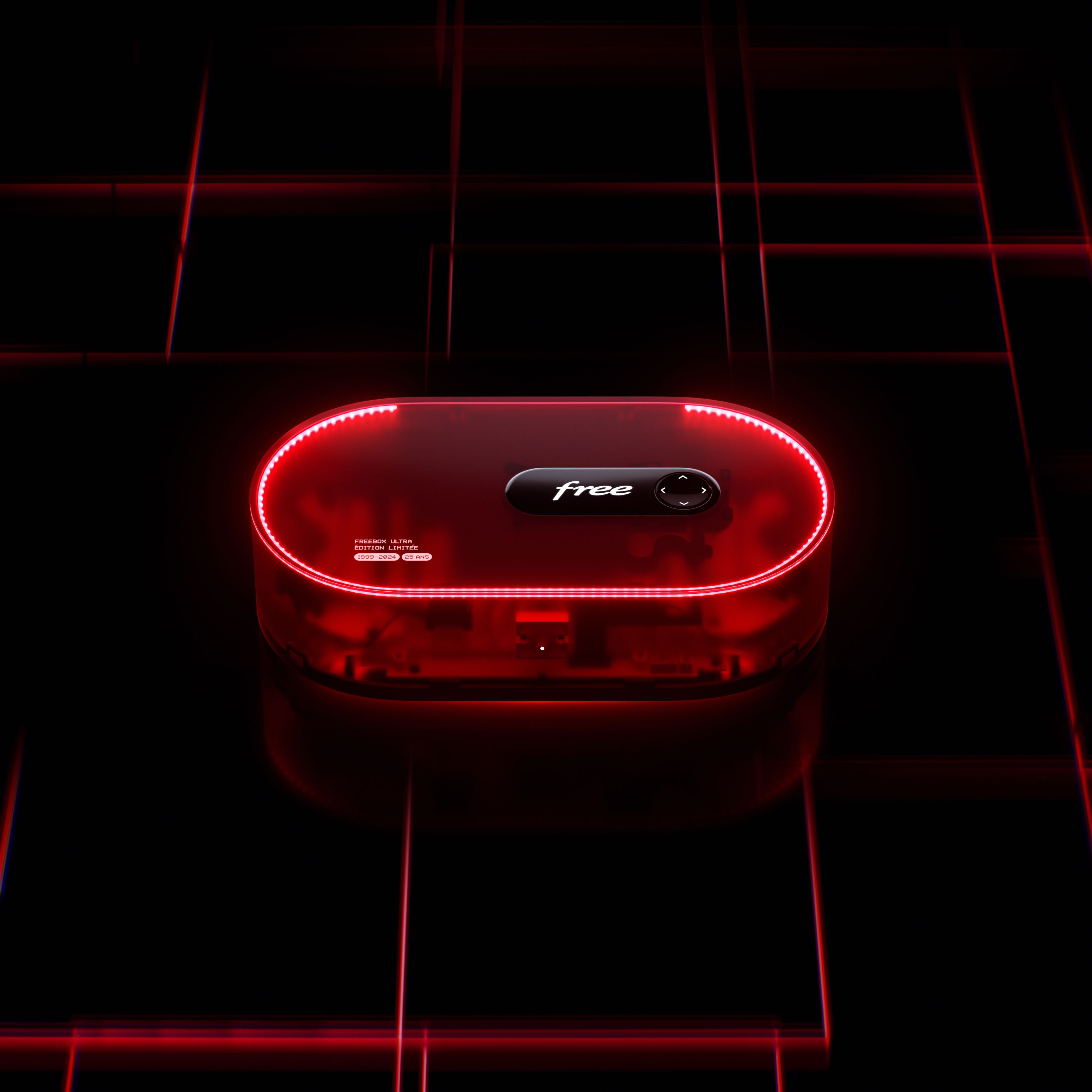 La Freebox Ultra Édition Limitée sort le grand jeu ! Son boîtier rouge est équipé de LED inspirées des customisations RVB que l’on peut retrouver sur les tours d’ordinateur et les périphériques de type claviers, souris ou écrans.