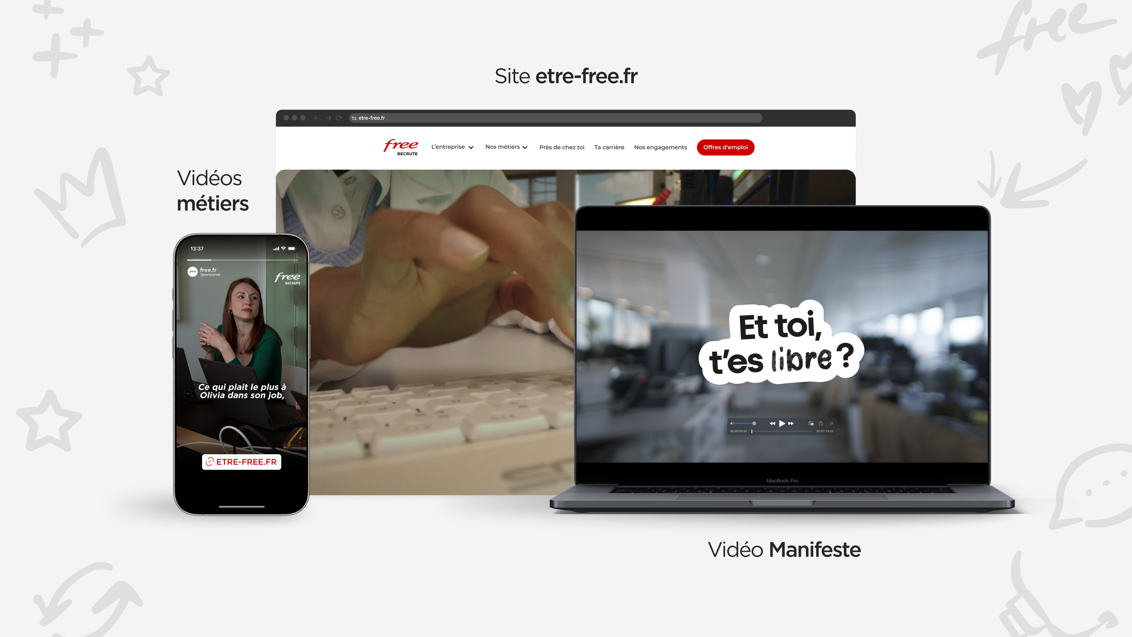 Afin de faire connaître sa culture singulière et d’attirer les meilleurs talents sur tous ses métiers, Free lance aujourd’hui une plateforme de marque dédiée autour du site etre-free.fr.
