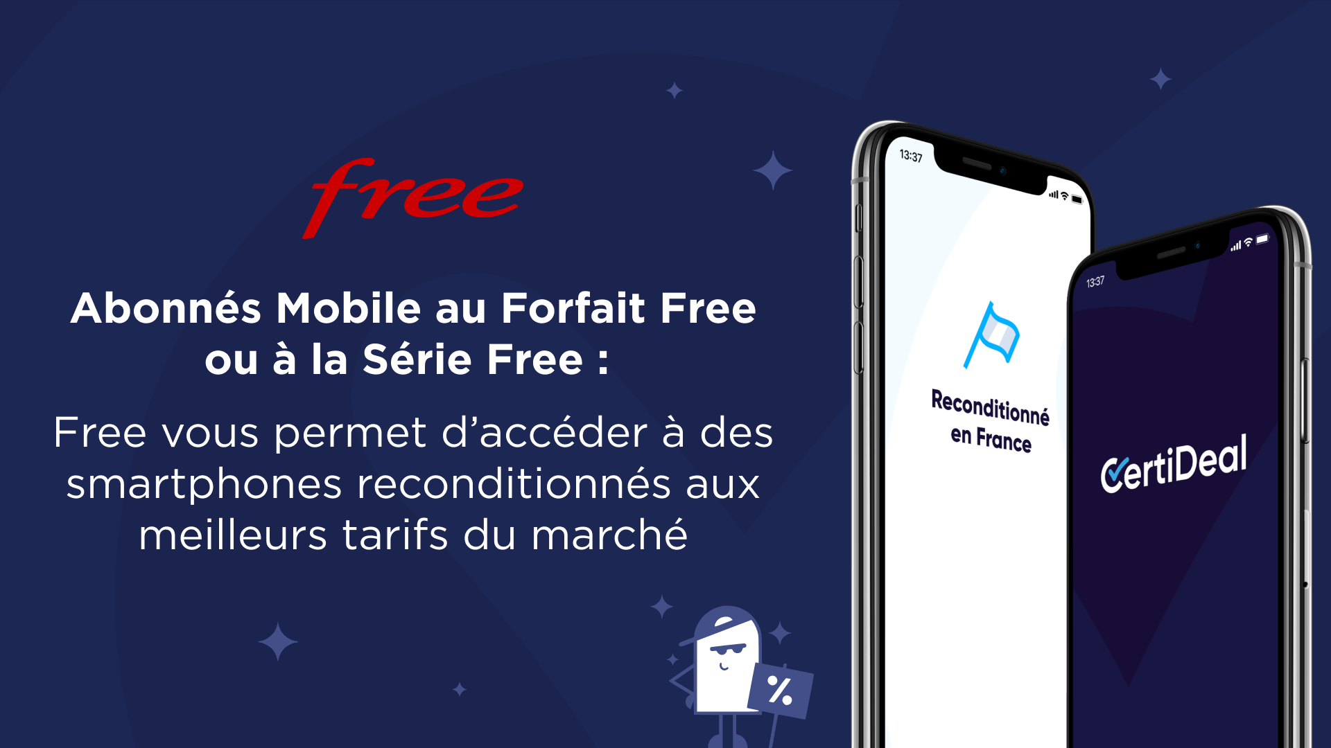 Free s’engage de nouveau en faveur du pouvoir d’achat de ses abonnés. CertiDeal offre aux abonnés Mobile Free éligibles une remise exclusive d’au moins 10% sur ses smartphones reconditionnés, ce qui leur permet de bénéficier des meilleurs tarifs du marché.