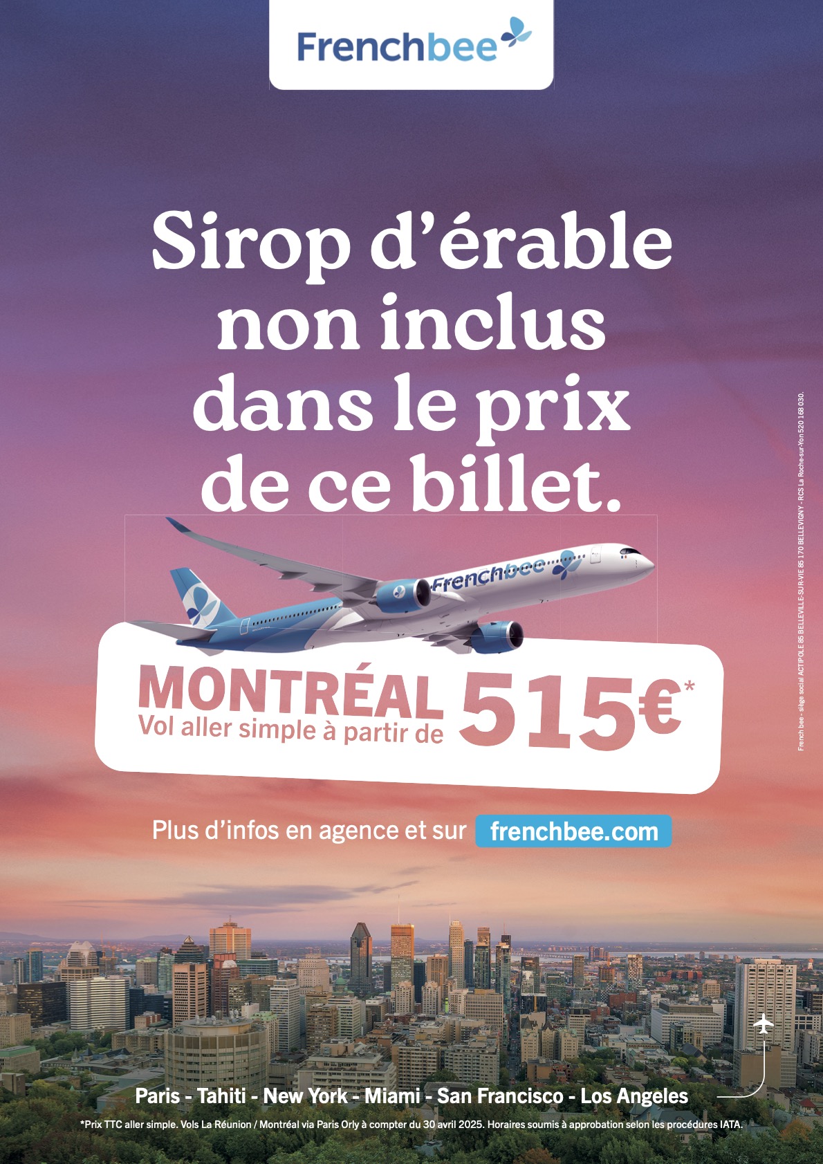 Rejoindre Montréal avec French bee, c’est opter pour une expérience de vol fluide par des vols réguliers – jusqu’à 5 vols/semaine en juillet et août et 4 vols/semaine sur la suite de la saison d’été – afin de garantir une accessibilité optimale à la métropole québécoise. La continuité du voyage depuis La Réunion via Paris offrira aux voyageurs de bénéficier d’une tarification raisonnable toujours la plus ajustée avec des services personnalisés et une totale flexibilité.