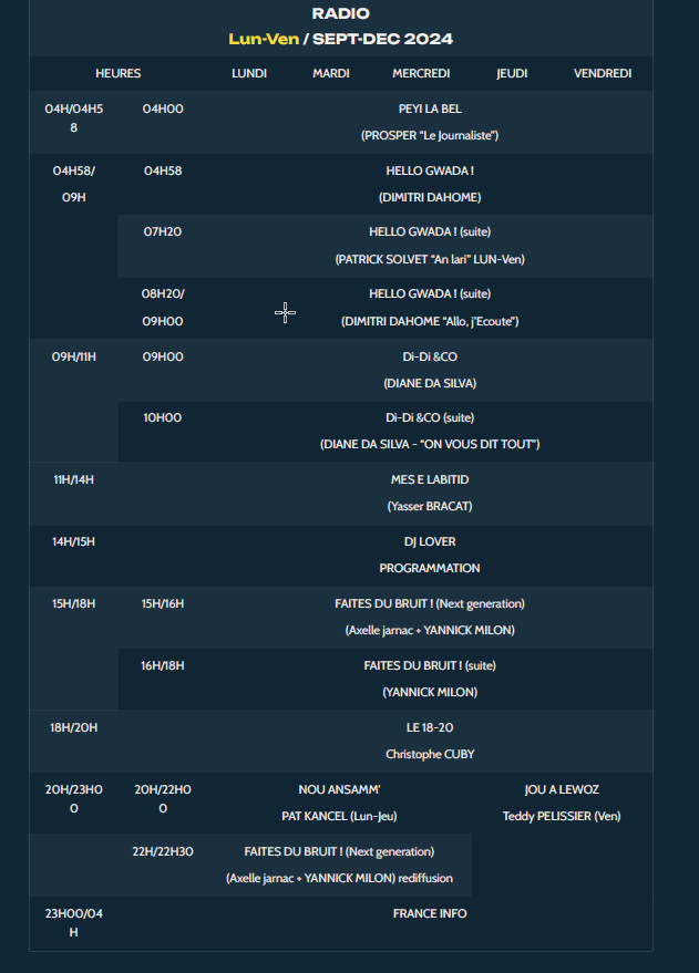Mais aussi les rendez-vous habituels des auditeurs : "Mès é La Bitid" avec Yasser Bracat, "Génération Vybe" avec Axelle...