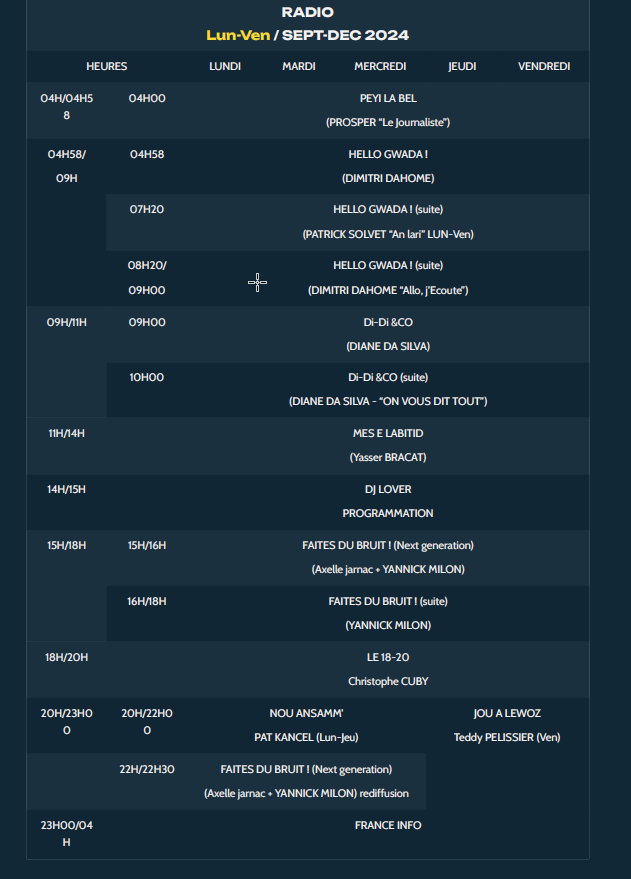 Grille des programmes Radio