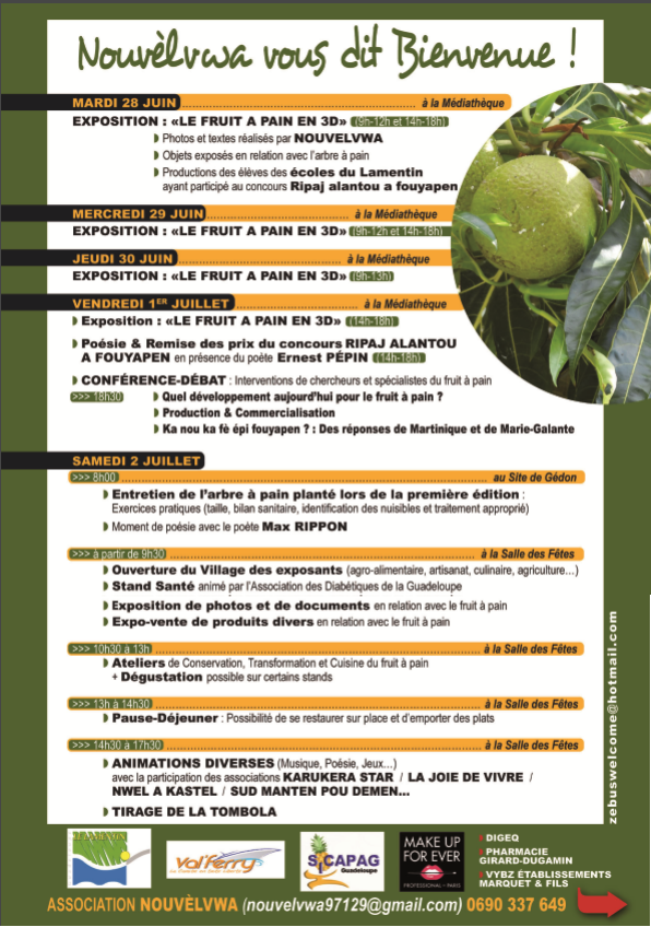 Dans le cadre de ses activités, l’association lamentinoise NOUVÈLVWA organise en partenariat avec la ville du LAMENTIN, la deuxième édition de la Fête du Fruit à Pain, intitulée « FOUYAPEN : ON MANMAN ZANFAN » sous la Présidence d’honneur de Monsieur Lucien DEGRAS.