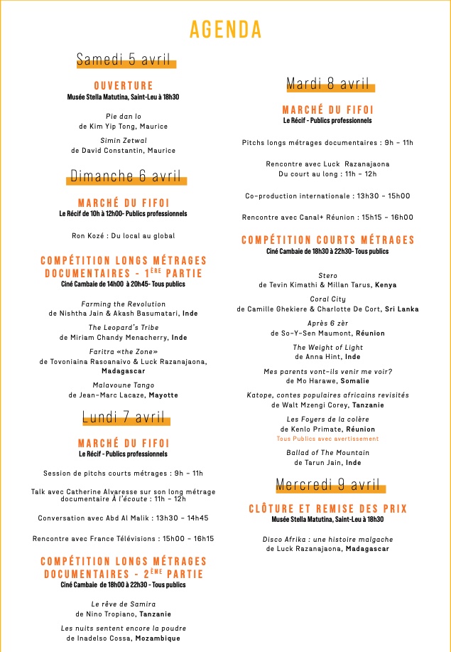 - Courts-métrages de fiction et documentaire : Des créations originales témoignant de la richesse narrative et esthétique de l’Océan Indien.