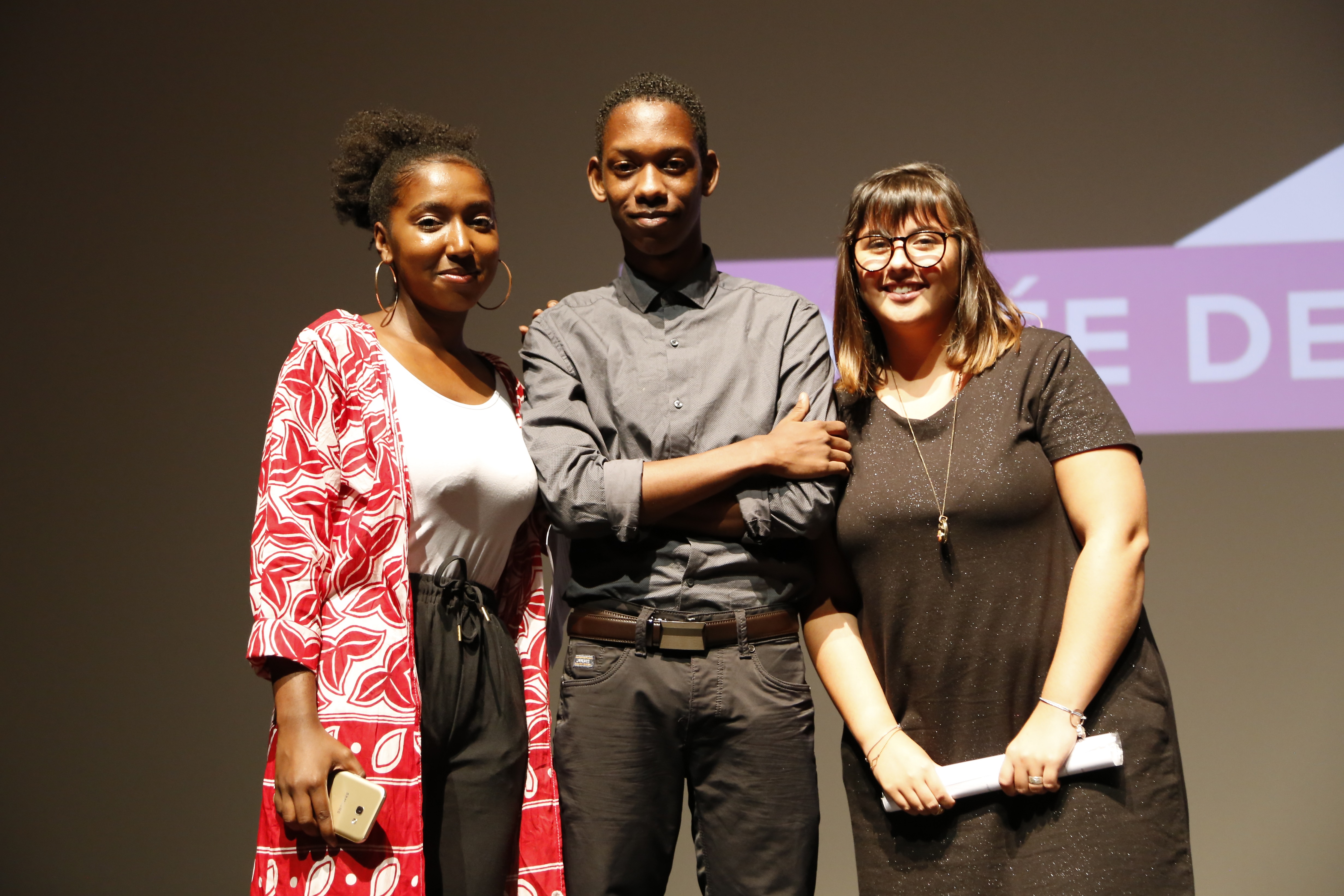 A l’annonce de leurs noms, Noa Sallé, Soilha M’Baé (2ème prix ex-aecquo) et Ludovic Babas (lauréat) se sont levés, très émus, et sont montés sur scène, accompagnés par les applaudissements nourris du public. Familles, amis, professeurs, élèves de leurs lycées, ils étaient nombreux ce soir-là à venir les écouter. Ils se sont donc exprimés une ultime fois, devant plus de 800 personnes, sur le thème de l’égalité Homme / femme.