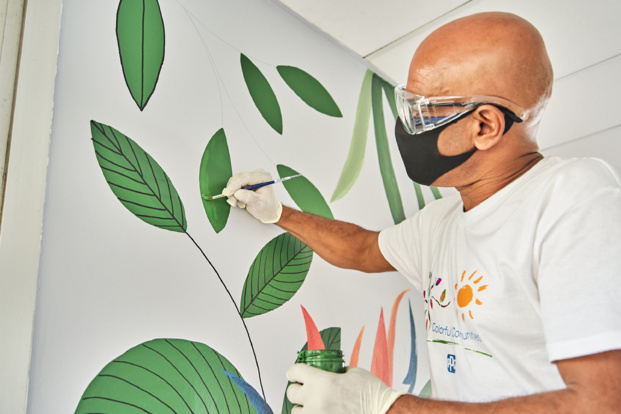 PPG a fait également appel à des artistes peintres qui mettront tout leur talent à embellir les murs des services, avec des fresques sur les thèmes de l’espace et la diversité, propices à l’évasion. Ces décors seront réalisés avec l’aide des salariés bénévoles PPG, dans un esprit de solidarité.