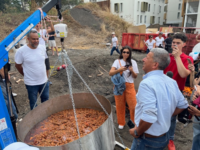 Avec la volonté de mettre en lumière le travail qui s'accomplit aujourd'hui sur la Ville de la Possession, la Kanopée, projet phare du cœur de ville, accueillait ce samedi 15 octobre, un événement partagé par les habitants de l'éco-quartier. C’est sur l’invitation de l’aménageur urbain Groupe Opale-Alsei et aux côtes des partenaires et des élus que 1500 personnes, d’un même quartier, se sont réunies autour du plus grand rougail saucisse du monde, un record homologué !