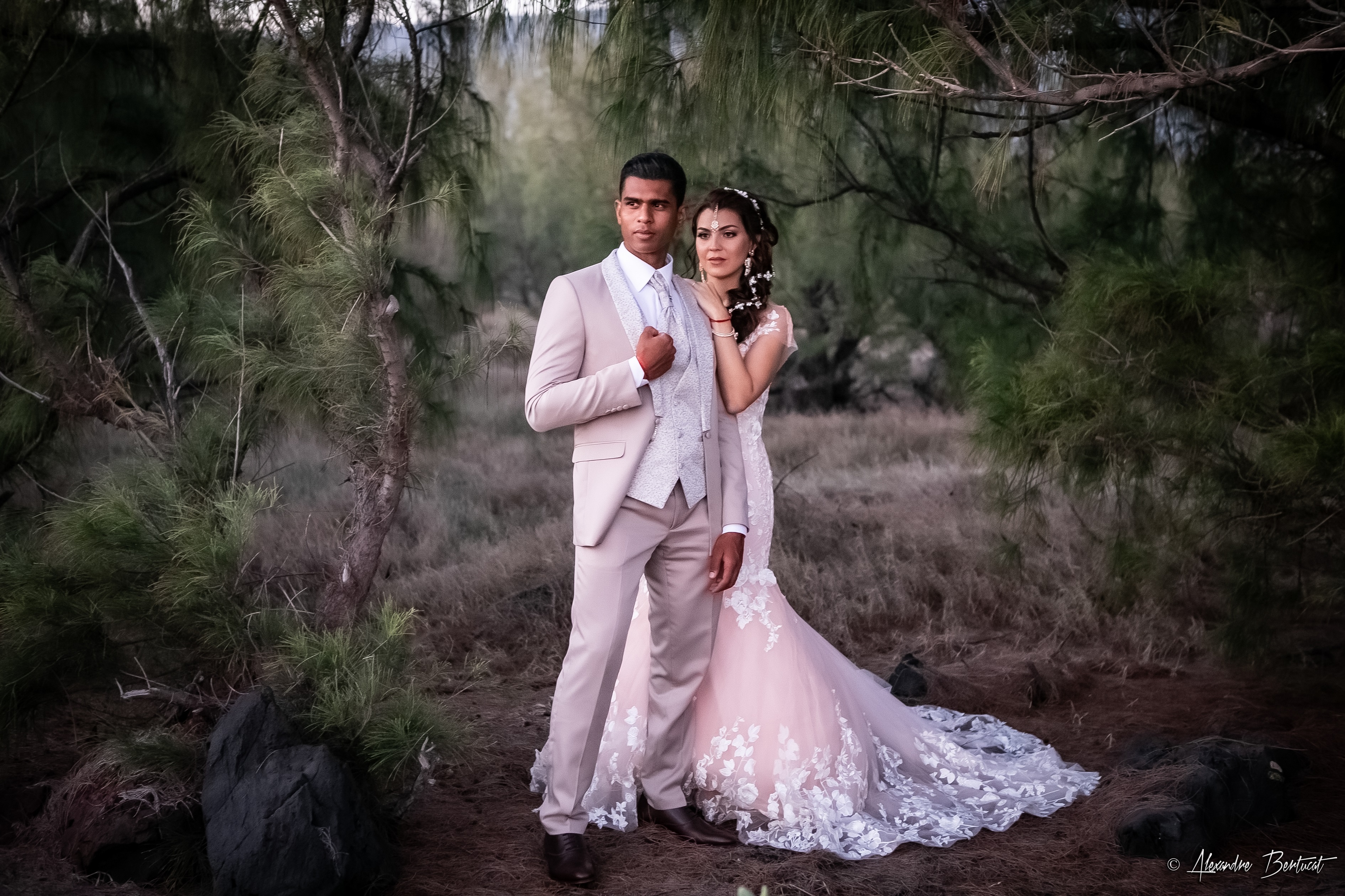 Lauriane, 34 ans divorcée et Mathias, 32 ans, se sont rencontrés grâce à une amie de la mariée. C’est une famille recomposée avec les deux enfants de la première union de Lauriane et les trois enfants de Mathias. Après trois ans de vie commune, ils se sont dits oui à la mairie de Saint-Pierre. Par la suite, les nouveaux mariés prévoient d’organiser la bénédiction de leurs alliances dans la pure tradition tamoule.