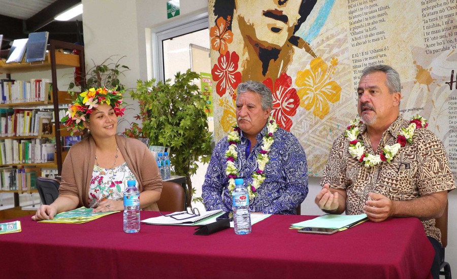 Le ministre en charge du Numérique, Jean-Christophe Bouissou, et le ministre de la Culture, Heremoana Maamaatuaiahutapu, ont présenté, mardi matin, le nouvel espace numérique à la médiathèque de la Maison de la Culture – Te Fare Tauhiti Nui.