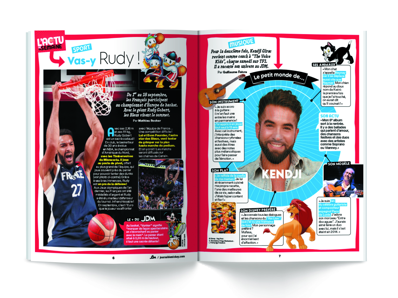Un cahier dédié à l'actualité jeunesse ouvre le journal : une personnalité appréciée des enfants détaille son univers dans un portrait tout en images ; une question liée à l'actualité est décryptée en 5 points clairs avec des dessins d'humour.