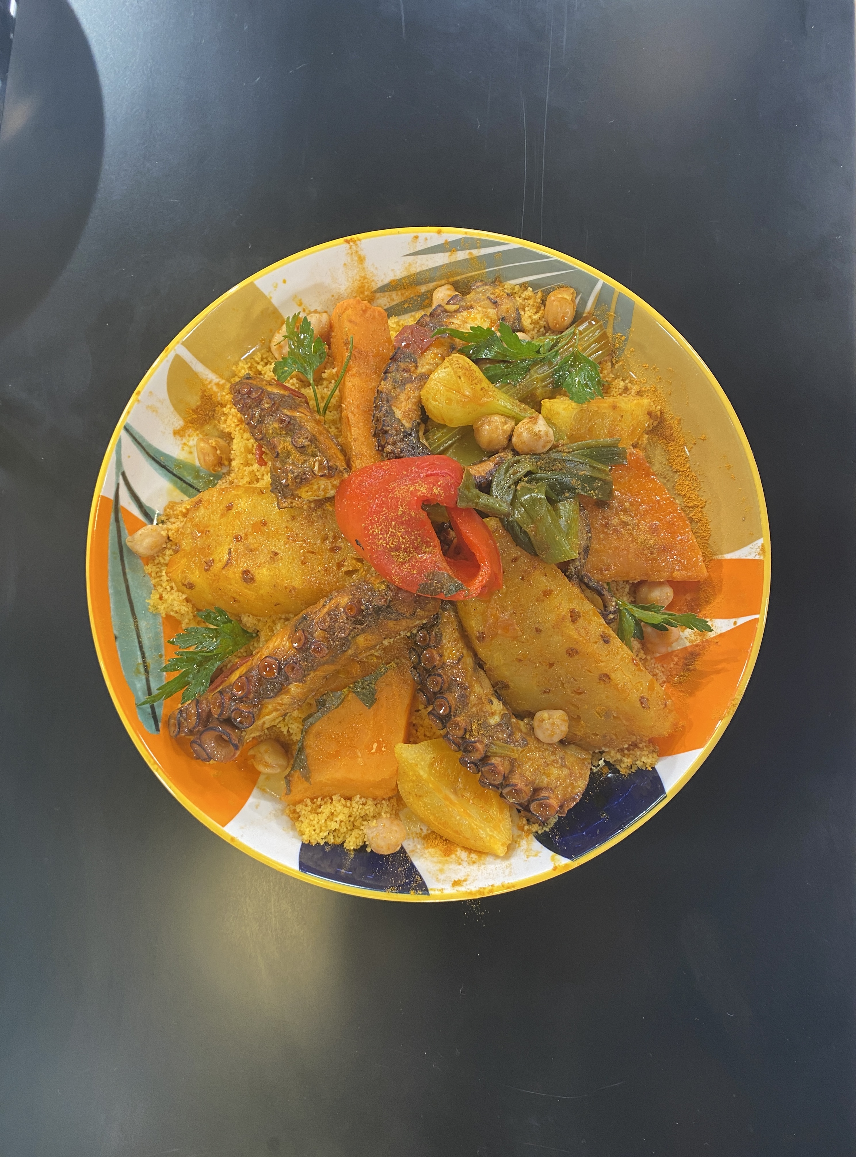 Avec Brice Laurent Dubois, cet amoureux des voyages en général et de la Guadeloupe en particulier prépare un couscous de la mer au poulpe.