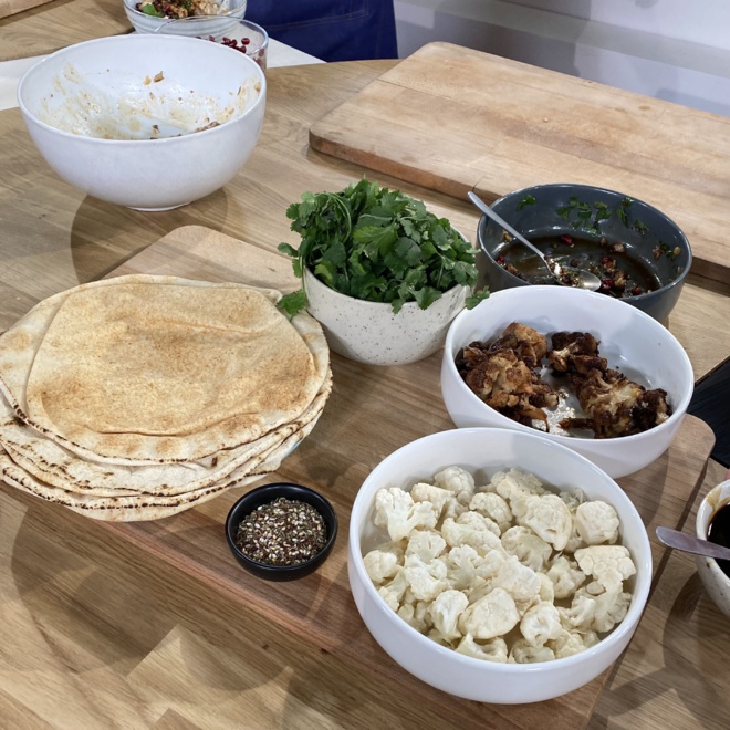 Sur le plateau d’outremer.gourmand, il va cuisiner le Mama ganoush, Caviar de chou-fleur en 2 textures.