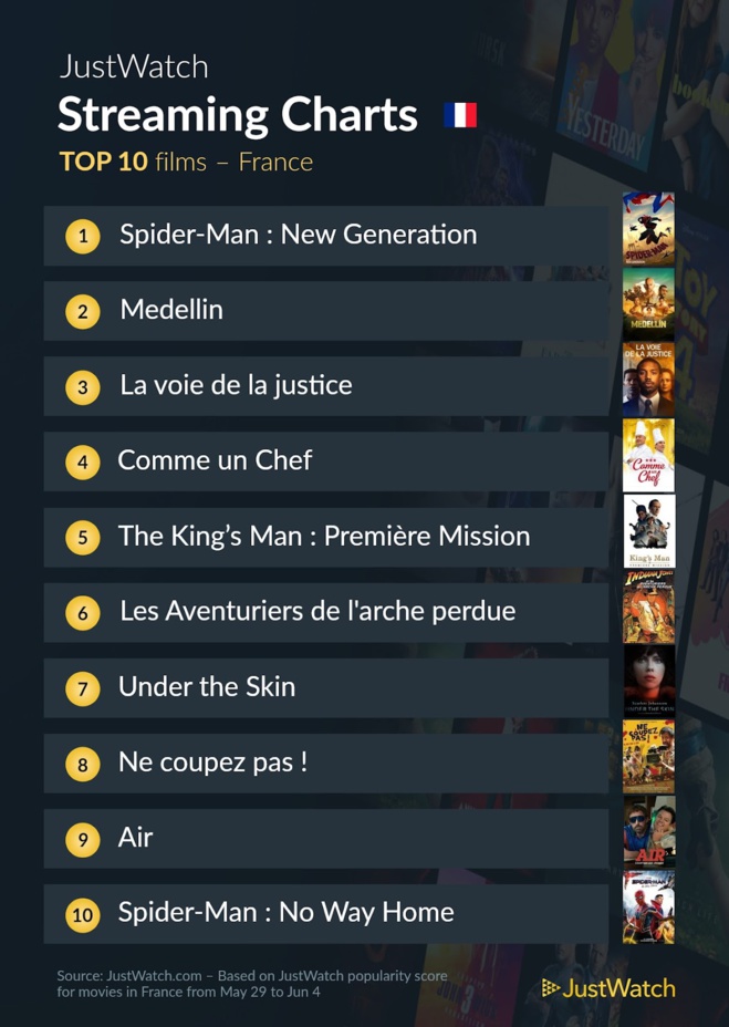 Le site partenaire JustWatch a répertorié les contenus les plus populaires en France sur les différentes plateformes de streaming (Netflix, myCANAL, Prime Video...) du 29 mai au 4 juin 2023.