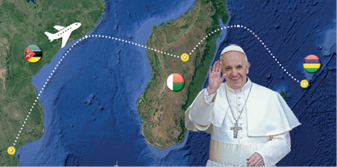 Cette visite pastorale qui se déroulera en 3 étapes, d’abord au Mozambique, puis à Madagascar et enfin à l’île Maurice, met accent sur la paix et l’espérance. Les thèmes choisis s’expliquent par les caractéristiques communes à ces trois pays : les catastrophes naturelles, la violence diffuse, mais aussi la vitalité de la communauté catholique.