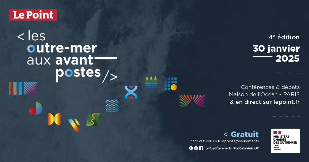 Rendez-vous à la Maison de l’Océan à Paris ou en direct sur le site lepoint.fr ce 30 janvier pour échanger sur les enjeux cruciaux des Outre-mer. Souvent perçus comme éloignés ou marginalisés, les Outre-mer se trouvent pourtant en première ligne face aux grands défis du 21ᵉ siècle.