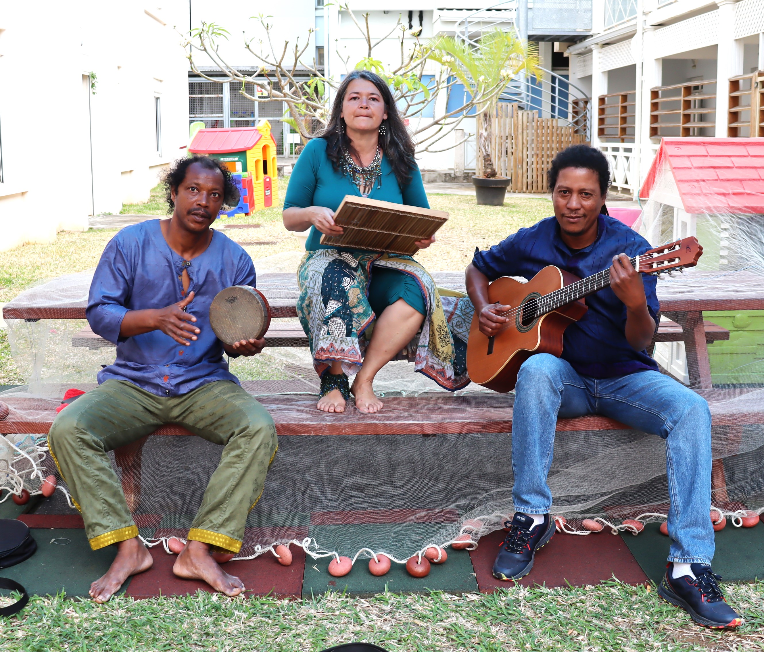 Les enfants de l’Hôpital d’Enfants de Saint-Denis, géré par l’ASFA (Association Saint-François d’Assise), ont donné un concert sur l’aire de jeux de l’Hôpital ce vendredi 30 septembre après-midi. Cet événement s’inscrit dans le cadre de la restitution du projet « Léritaz marmay », visant à la valorisation et à la redécouverte de l’héritage culturel réunionnais. Ce sont les artistes locaux de la troupe de maloya Tramay qui ont animé ce projet, dans le cadre de la convention Culture et Santé, avec le soutien de la Direction des Affaires Culturelles (DAC) de La Réunion (DAC), du Ministère de la Culture et de l’Agence Régionale de Santé de La Réunion (l’ARS La Réunion).
