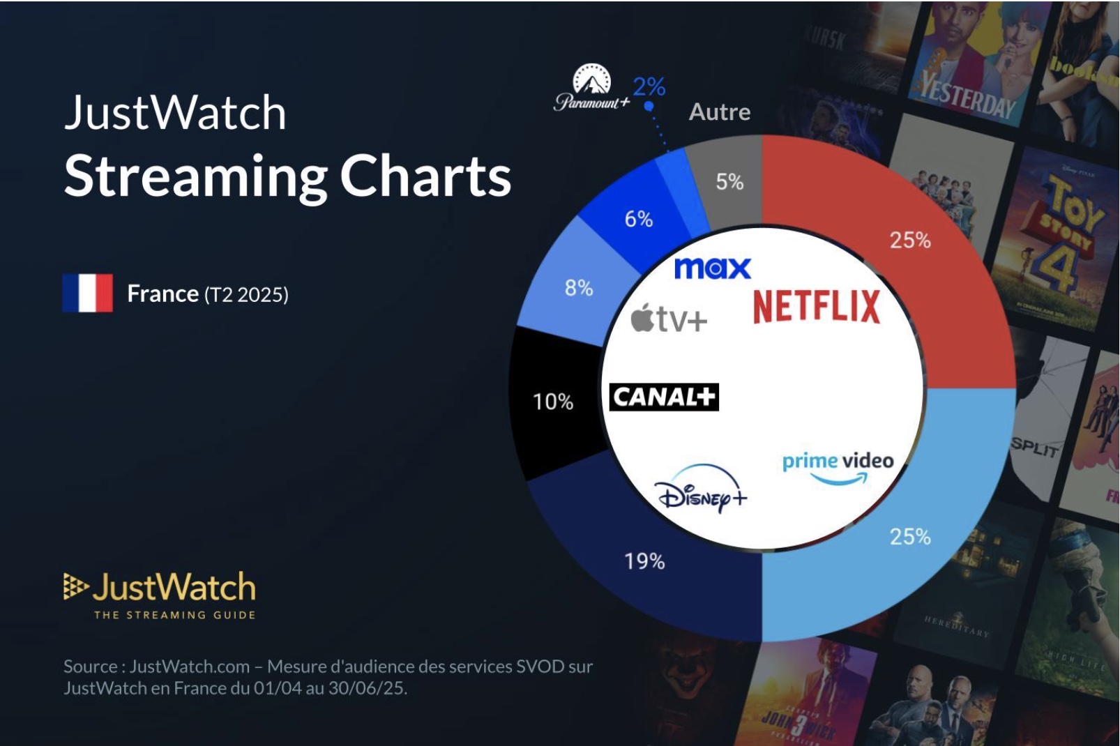 JustWatch a publié son dernier rapport sur les parts de marché de la VOD en France, reflétant les préférences en matière de streaming entre le 1er janvier et le 30 juin 2025.