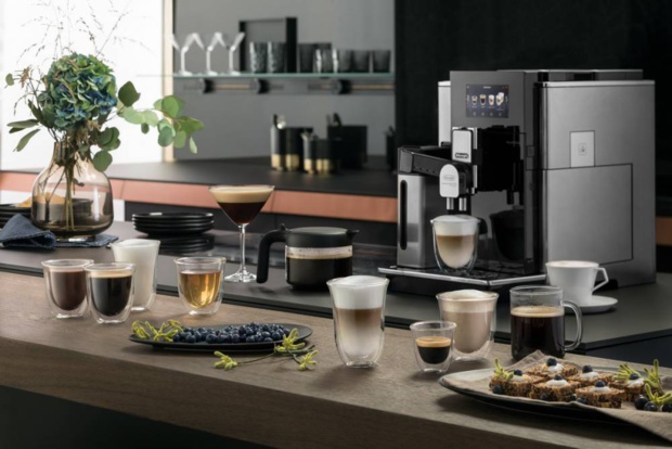 Petit noir. Design ultra-léché, matériaux nobles, cet expresso broyeur connecté, doté de deux bacs à grains et de deux moulins, vous permet de changer de café selon vos envies. Cette machine propose vingt-cinq recettes de cafés et boissons lactées, auxquelles s'ajoutent six créations qui peuvent être mémorisées.