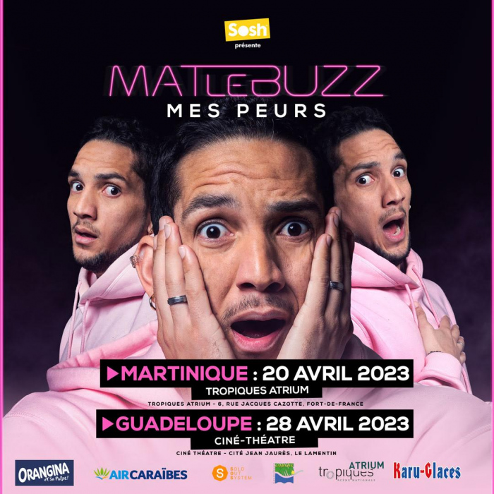 Après avoir été sold out à Paris, Mat Le Buzz poursuit sa tournée en s’attaquant à la Martinique le 20 avril au Tropiques Atrium et la Guadeloupe, le 28 avril au Ciné-Théâtre (Lamentin)!