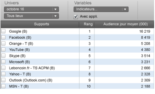 Classement des acteurs de la catégorie « Actualités & Informations » Audience jour moyen (en milliers)