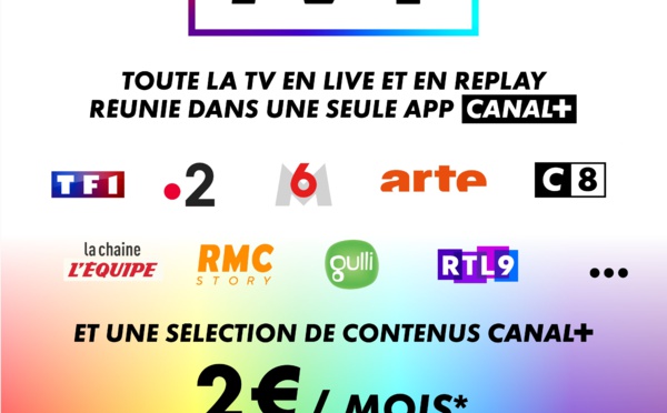 CANAL+ France lance aujourd'hui TV+, sa nouvelle offre de streaming regroupant au même endroit toute la TV en live et en replay, avec, en plus, une sélection de contenus CANAL+. Avec TV+, CANAL+ apporte au plus grand nombre une solution simple et accessible d’accès à la télévision, pour 2€ par mois sans engagement.