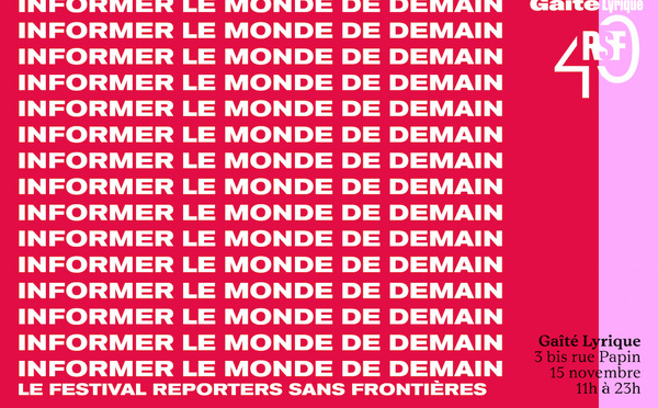 Pour clôturer une année d’événements marquant ses 40 ans d’engagement en faveur de la liberté de la presse, Reporters Sans Frontières (RSF) organise pour la première fois son propre festival, « Informer le monde de demain », le 15 novembre à La Gaîté Lyrique (Paris)