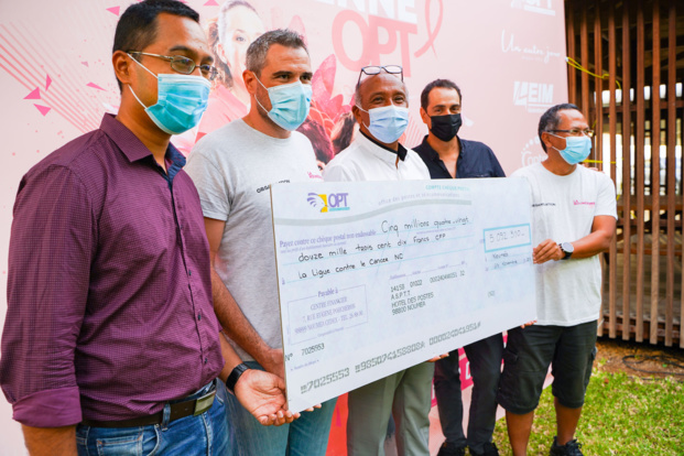 5 092 310 FCFP soit 42 550€, c'est la somme remise par l'Office des Postes et des Télécommunications de Nouvelle-Calédonie (OPT-NC), comité organisateur de la Nouméenne OPT 2021 à la Ligue contre le cancer NC. Une somme record pour cette 16e édition.