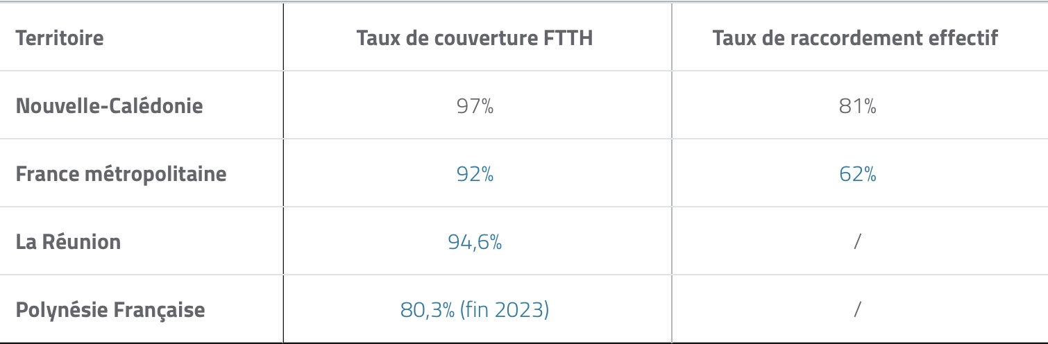 Sur le papier, les performances numériques de la Nouvelle-Calédonie n’ont rien à envier à celles d’autres territoires d’outre-mer. En matière de fibre optique, la couverture est supérieure à celle de la Polynésie française ou de La Réunion. Côté mobile, la 4G couvre 99 % de la population, un résultat équivalent à celui des meilleurs standards nationaux.
