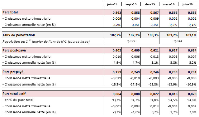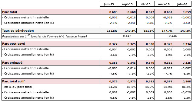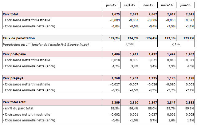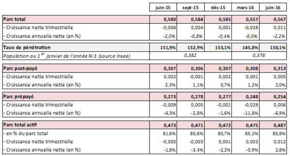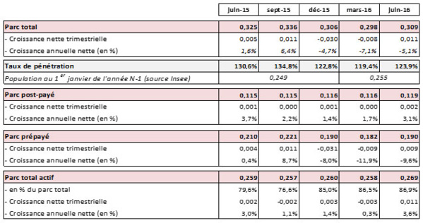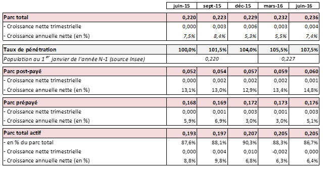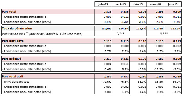 Le nombre de cartes MtoM* s'élève à 24 000 au en Juin 2016, résultat identique au trimestre précédent.