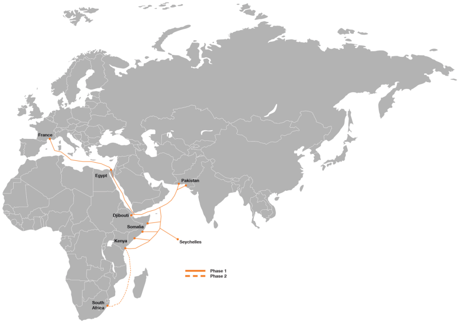 Dans le cadre de son partenariat avec PCCW Global et PEACE Cable International Network, Orange a acquis de la capacité sur le câble entre Marseille et le Kenya afin de soutenir la croissance du trafic en Afrique de l’Est, notamment en direction de La Réunion et de Mayotte. L’objectif pour Orange est également de sécuriser  des routes alternatives et de réduire sa dépendance vis-à-vis des systèmes existants sur la côte orientale de l’Afrique.