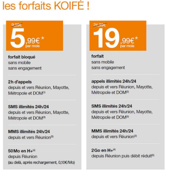 L’offre KOIFE ! est une offre assumée par Orange et bénéficie de la qualité du réseau mobile Orange et de la couverture 3G et H+ de la Réunion pour profiter de l’internet mobile.