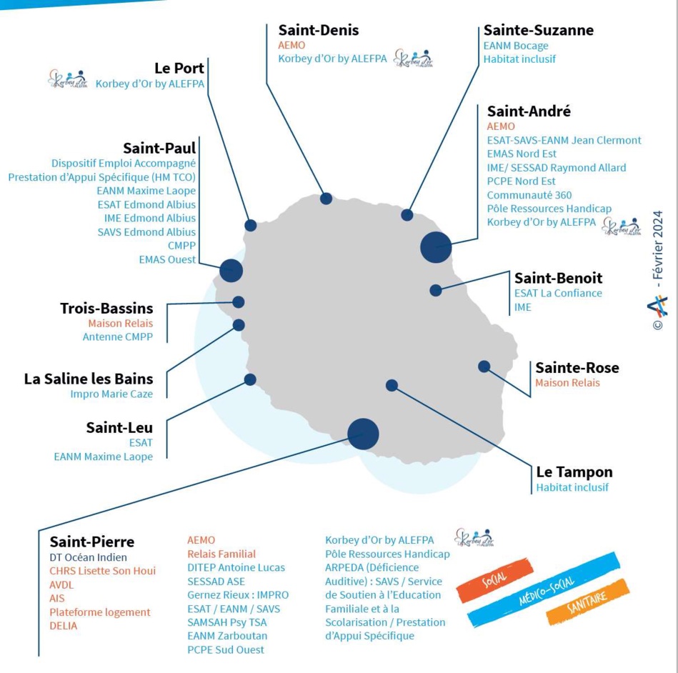 Sur le territoire de l’Océan Indien (La Réunion et Mayotte), l’ALEFPA gère 57 établissements et services. En 2022, elle accompagne 13 541 enfants, adolescents, adultes et personnes âgées et embauche 1 397 professionnels.