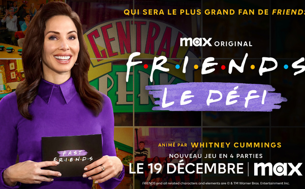 À l’occasion du 30ᵉ anniversaire de la série culte, Max propose un événement inédit : FRIENDS : LE DÉFI. Ce jeu télévisé en quatre parties, animé par l’humoriste Whitney Cummings, débutera le jeudi 19 décembre et continuera les jeudis suivants jusqu’au 9 janvier