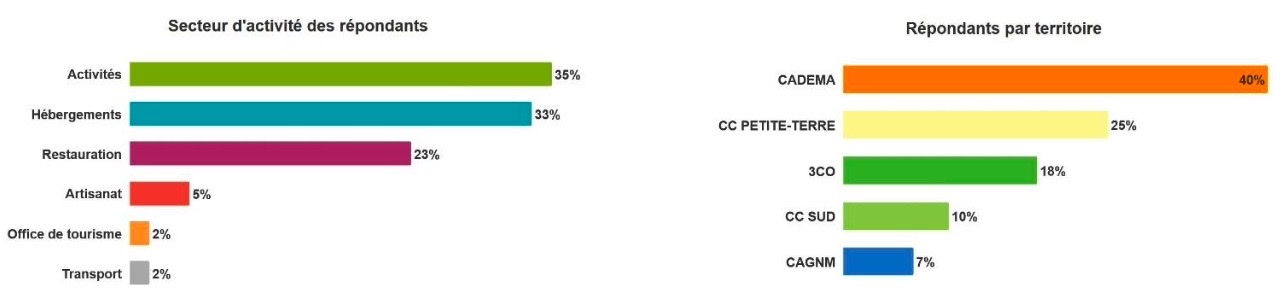 108 professionnels du tourisme ont répondu à cette enquête flash pour faire l’état des lieux de la filière touristique après le passage du cyclone Chido. 100% des hôtels, résidences du tourisme et du secteur nautique sont intégrés.