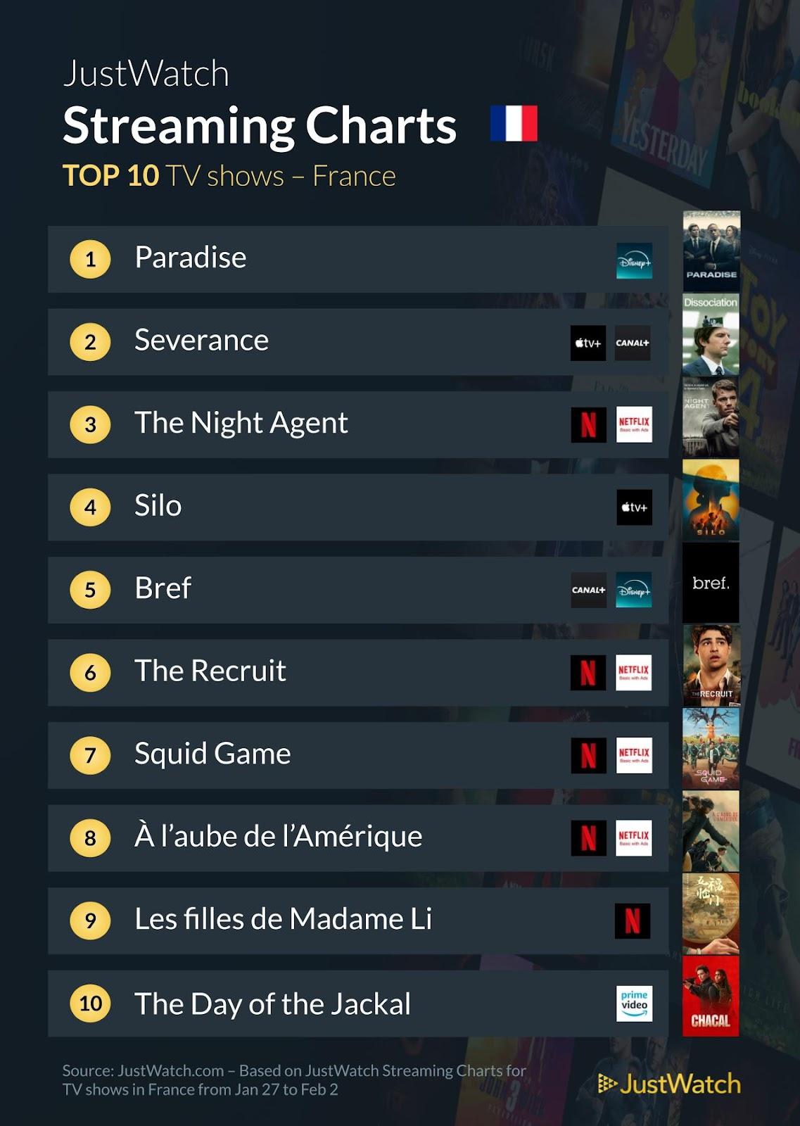 Le site partenaire JustWatch a répertorié les contenus les plus populaires en France sur les différentes plateformes de streaming (Netflix, myCANAL, Prime Video...) du 27 janvier au 2 février 2025.