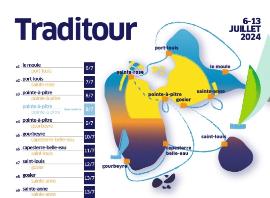 Vivez l'événement voile des vacances du 06 au 13 juillet sur Guadeloupe la 1ère, avec cette année un dispositif exceptionnel et en direct, pour permettre aux téléspectateurs, auditeurs et internautes de vivre l'événement comme s'ils y étaient : une expérience immersive et authentique, reflétant toute la richesse culturelle et festive du Traditour 2024 ! Grâce à cette couverture en temps réel, chacun pourra profiter pleinement des moments forts et de l'ambiance unique de ce rendez-vous incontournable en Guadeloupe.